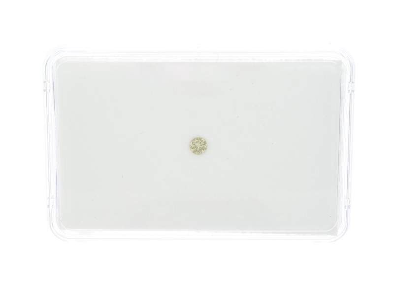 DIAMANT, briljantslipad, 0,13 ct, Fancy Light Greenish Yellow/VS2, Chameleon-effect, IGI report 549290866, litet nagg på kuletten och inverterad natural på kronan.