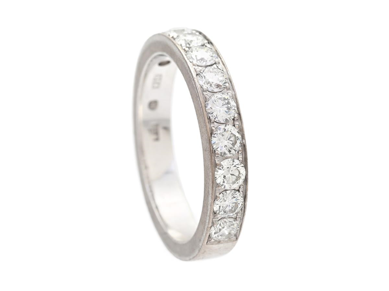 ALLIANSRING, 18K vitguld, 7 briljantslipade diamanter 0,35 ctv enligt gravyr, ca TW-W/VS, stl 15,75 mm, vikt 2,2 g. slitna klor, gravyr.