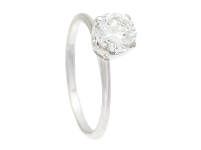 ENSTENSRING, 18K vitguld, briljantslipad diamant 0.85 ct W-TCR/SI2, stl 16,75 mm, vikt 2,1 g, diamanten har en kulettfasett.