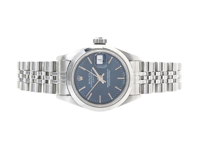 ROLEX, Oyster Perpetual, Date, Ref nr. 69160, Serie nr. R471550, Cal 2135, Verk nr. 1240306, Boett nr. 69000A, damur, 26 mm, stål, automatisk, safirglas (repor/nagg), datum, utbytt urtavla/visare (Luminova), defekt (går ej, akut servicebehov), Jubileelänk (2004), viklås, Ref nr. 62510D-CL7/568 B, ca 1987, box (ej komplett), ytterkartong.