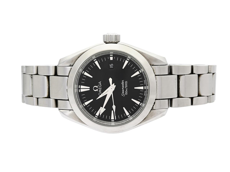 OMEGA, Seamaster (150m/500ft), Aqua Terra, Cal 1424, Serie nr. 58104956, PIC nr. 2577.50.00, Ref nr. ST 596.1110, Boett nr. 596.1110 (LL), damur, 29,2 mm, stål, quartz, safirglas, datum, originallänk, viklås, Ref nr. 6573/912, ca 2004.