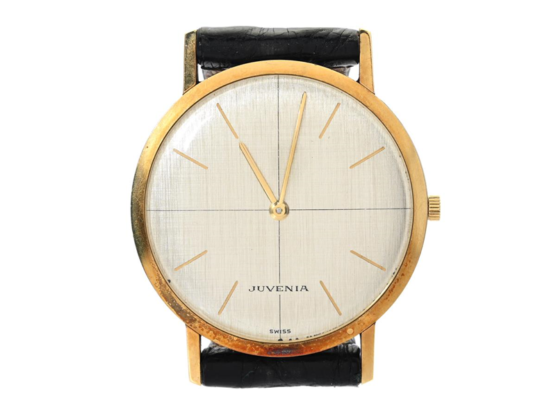 JUVENIA, herrur, 33 mm, Cal 604, Boett nr. 601792, guld på stål, manuell, plexiglas, läderband, ca 1965, etui.