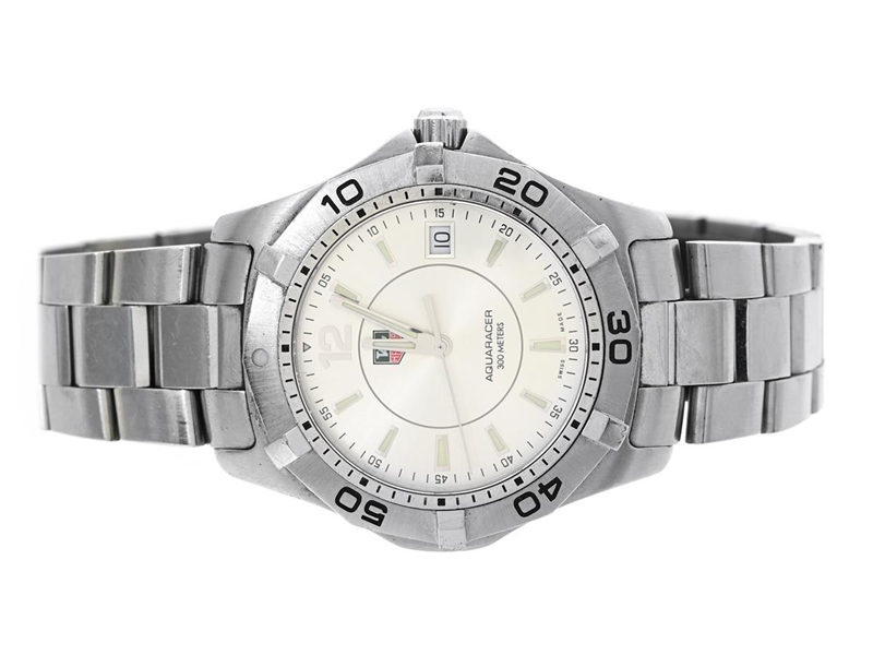 TAG HEUER, Aquaracer (300 Meters), Serie nr. RRY0792, Ref nr. WAF1112.BA0801, Boett nr. WAF1112, herrur, 39 mm, stål, quartz, safirglas (skadat), datum, originallänk, viklås, Ref nr. FAA016/Y, cert (ej komplett), ca oktober 2008, box (skadad), ytterkartong.