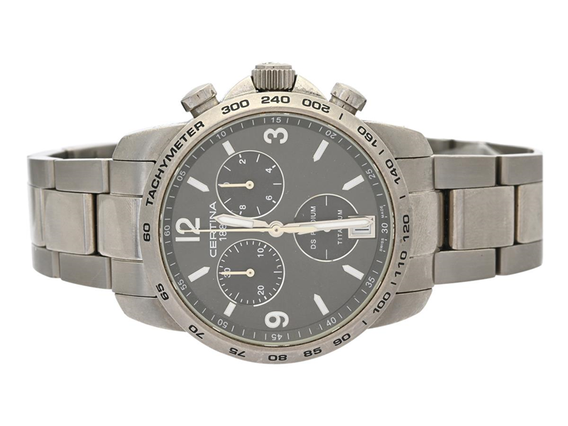CERTINA, DS Podium, Titanium, "Tachymeter", Serie nr. 12BC0409506, Ref nr. C001.417.087.00, Boett nr. C001417A, kronograf, herrur, 40 mm, titan, quartz, safirglas, datum, originallänk, viklås, Ref nr. C001417A, cert, juli 2013, box.