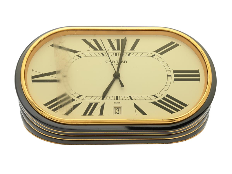 CARTIER, bordsur, Boett nr. 7531 04120, 137 x 80 mm, gulmetall/lack, quartz (går ej), datum, ca 1995.
