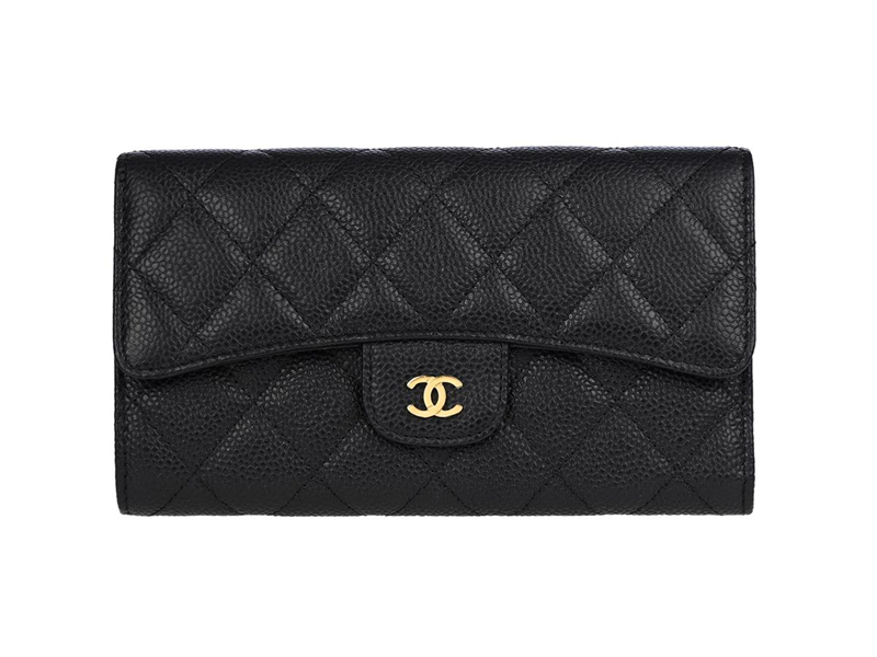 PLÅNBOK, CHANEL. Long Wallet, svart quiltat kaviarläder, guldfärgade beslag, 18x11 cm, hologrammärkt 16826457, år 2012, kort, mynt, sedel.