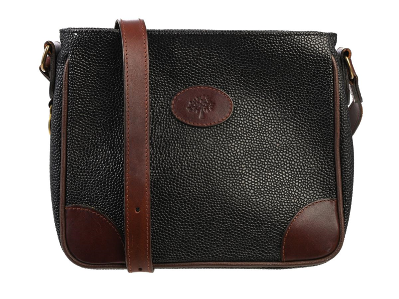 VÄSKA, MULBERRRY, svart scotchgrain, brunt läder, mässingfärgade beslag, 23x19x6 cm.