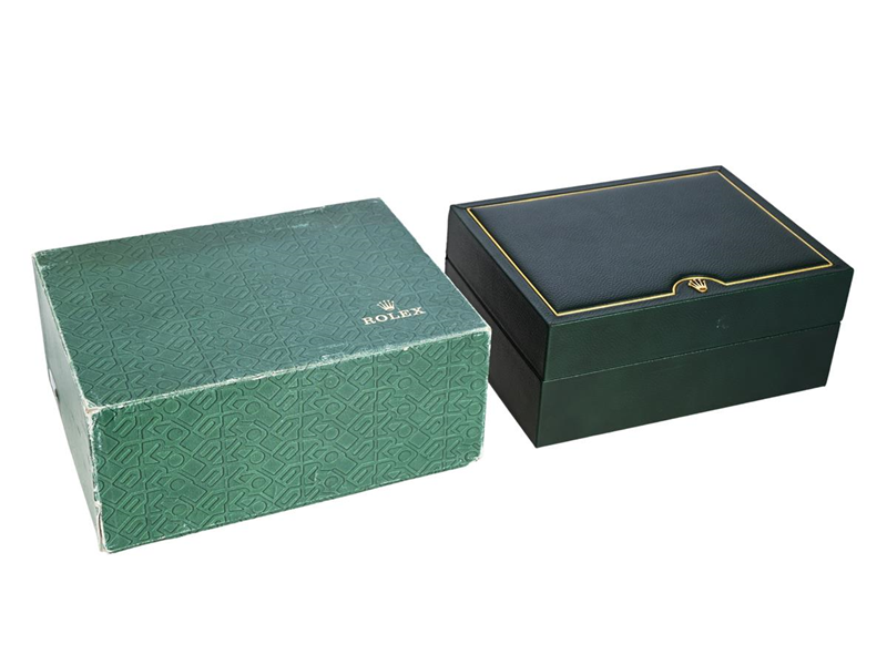 BOX, till Rolex Day-Date, grön, 202 x 150 x 87 mm, Ref nr. 70.00.55, ca 2000, ytterkartong (skadad).