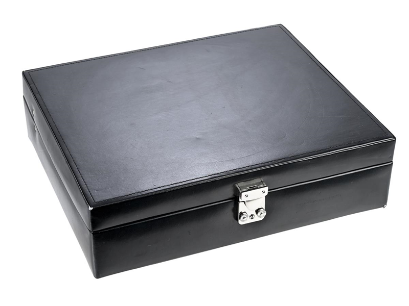 FÖRVARINGSETUI, för 15 st. armbandsur, svart, 325 x 272 x 87 mm, skadad, nyckel.