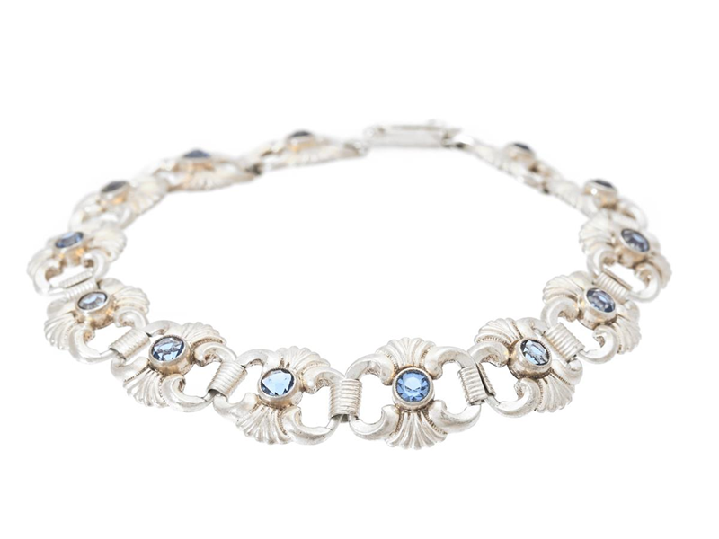 ARMBAND, silver, blå stenar, längd 18 cm, vikt 13,6 g.