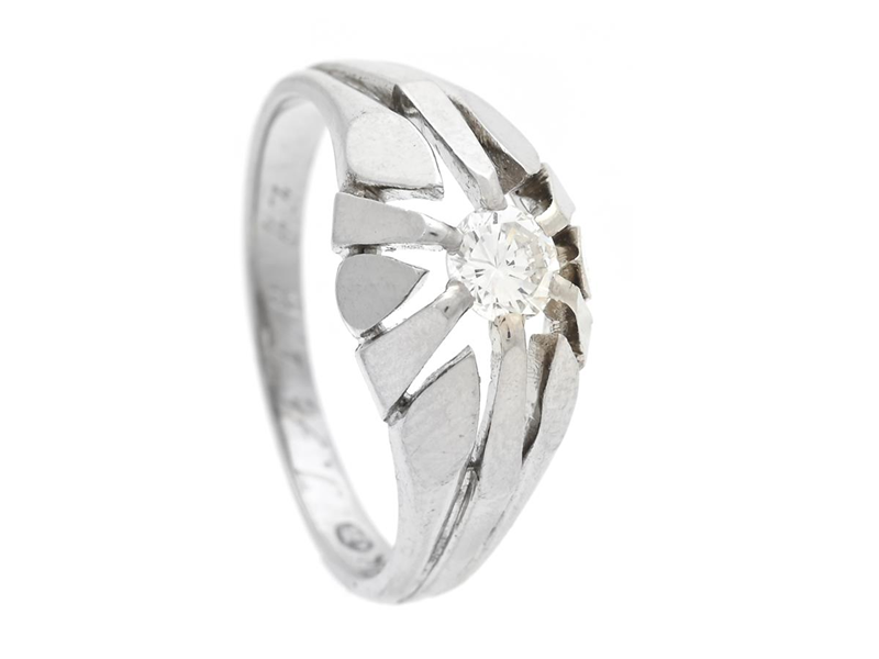ENSTENSRING, 18K vitguld, äldre briljantslipad diamant 0,30 ct enligt gravyr, ca W/VS, storlek 18,25 mm, vikt 5,3 g, gravyr.