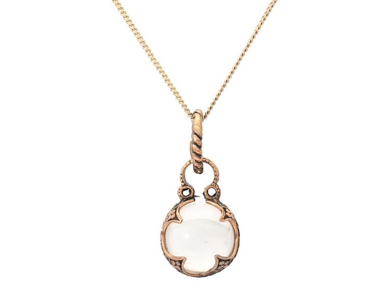 HÄNGE MED KEDJA, gulmetall, glas, längd 62 cm, vikt 16 g.