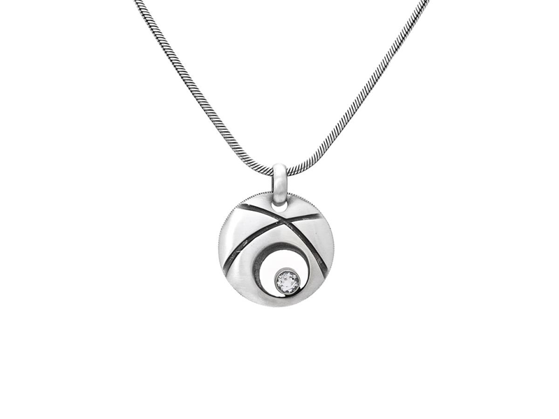 KARL LAINE, hänge med kedja, sterlingsilver, bergkristall, längd 47,5 cm, vikt 17,2 g.