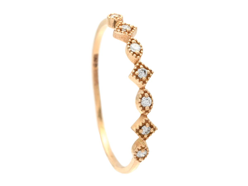 RING, 18K roséguld, 7 briljantslipade diamant ca 0,07 ctv, ca TW/VS, stl 17 mm, vikt 0,8 g, svag konstruktion.