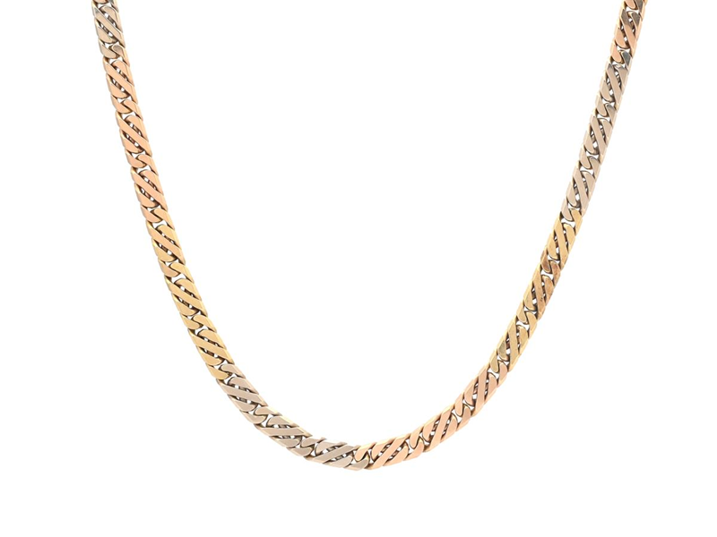 HALSKEDJA, 18K guld, fantasilänk, trefärgat guld, längd 61 cm, vikt 50,7 g.