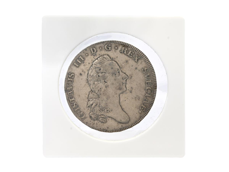 MYNT, silver, Riksdaler, 1776, Gustav III, kvalité ca 1/1+, diameter 42 mm, vikt 29,4 g.