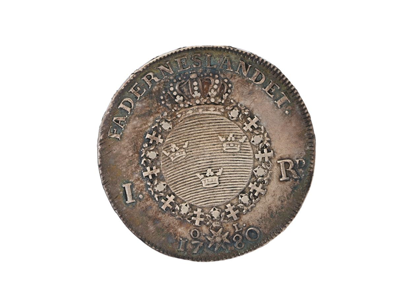 MYNT, silver, Riksdaler, 1780, Gustav III, kvalité ca 1?/1, diameter 42 mm, vikt 29,0 g.
