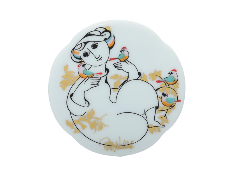 BROSCH, porslin, Björn Wiinblad för Rosenthal, diameter 5,1 cm, etui, vikt 12 g.