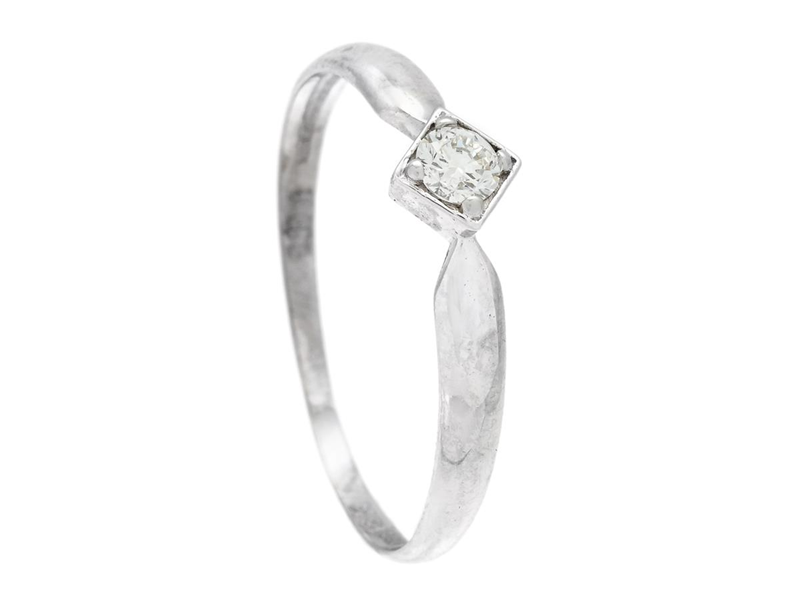 RING, 18K vitguld, briljantslipad diamant ca 0,10 ctv, ca TW/VS, stl 17 mm, vikt 1,0 g.