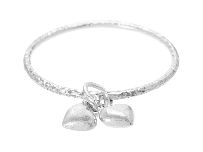 ARMRING, sterlingsilver, 2 hjärtan, innerdiameter ca 60 mm, vikt 36,2 g.
