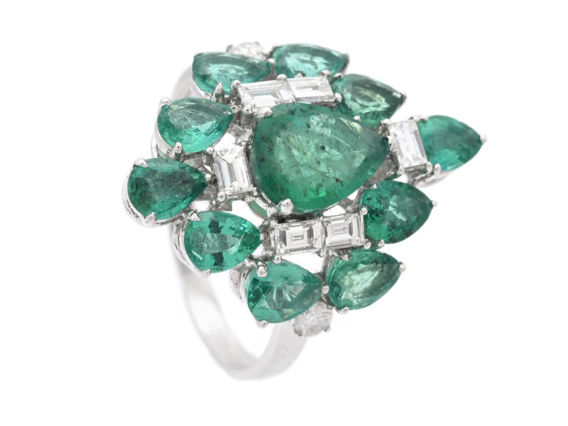 RING, 18K vitguld, smaragder 2,93 ctv, baguette - och briljantslipade diamanter 0,41 ctv, ca TW/VS-SI, stl 17,25 mm, vikt 4,2 g,
