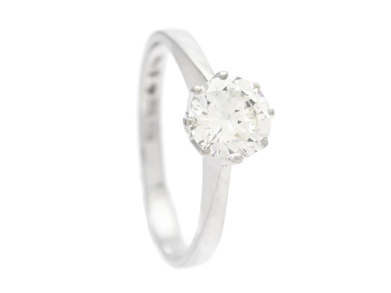 K. TORNDAHL, enstensring, 18K vitguld, briljantslipad diamant ca 0,88 ct, ca TW(F)/VS1, Stockholm 1980, stl 17,25 mm, vikt 3,2 g.