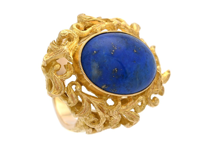 RING, 18K guld, cabochonslipad lapis lazuli ca 9,00 ct, Mura Roma, Italien, stl 18,25 mm, vikt 16,4 g.