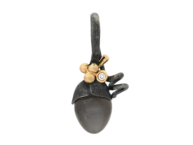 OLE LYNGGAARD, hänge, Lotus sprout pendant, silver/18K guld, månsten, briljant 0,01 ct.