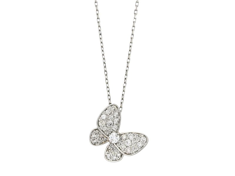 HÄNGE MED KEDJA, fjäril, platina, briljantslipade diamanter ca 0,52 ctv, ca TW-TCr/VS-SI, längd 45 cm, vikt 4,2 g.