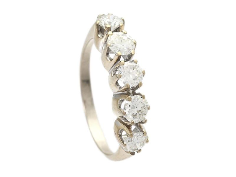 RING, 18K vitguld, 5 briljantslipade diamanter ca 1,06 ctv, ca W-Cr/VS, stl 17,25 mm, vikt 2,8 g.