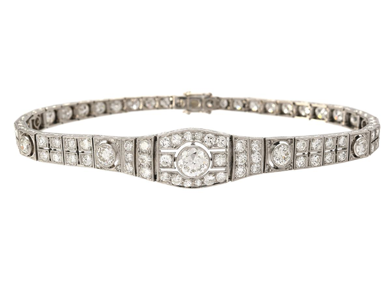 ARMBAND, platina, gammal-, äldre briljant- och åttkantslipade diamanter ca 4,75 ctv, Art Deco, 1930-tal, längd 18 cm, vikt 19,1 g, enstaka diamanter har nagg, etui.