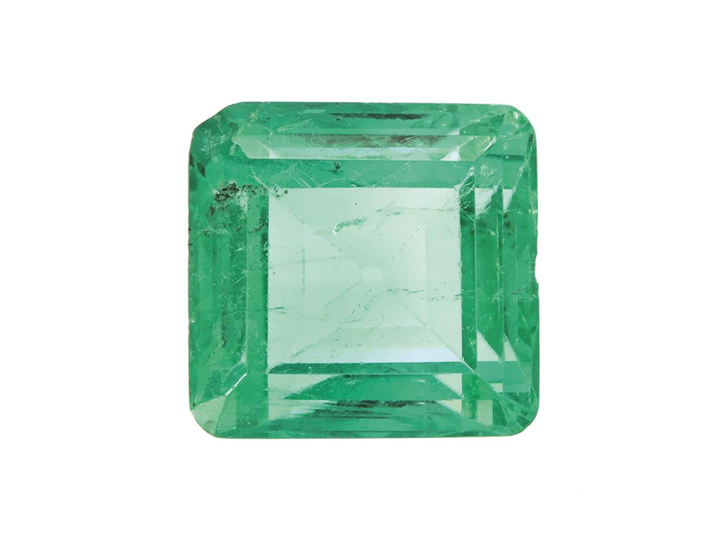 SMARAGD, asscherslipad, 6,63 ct, 11,18x10,75x6,95 mm, Colombiansk, minor amount of oil, GCS report 5785-4037, smaragden har nagg och slitna fasettkanter.