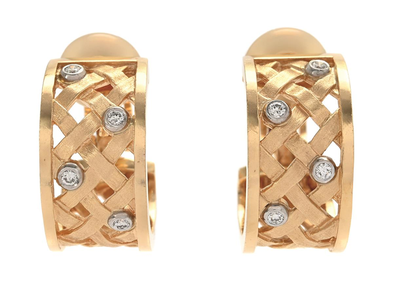 OLE LYNGGAARD, örhängen, 18K guld, 8 briljantslipade diamanter ca 0,08 ctv, ca TW/VS, höjd 20 mm, vikt 19,1 g, stift/clips.