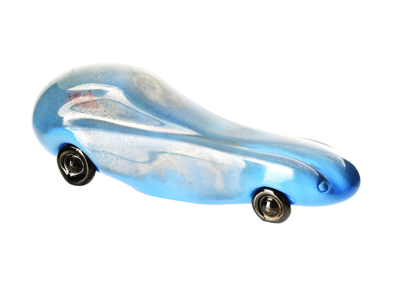 KONSTGLAS, design Olle Bronzén, blå bil, Kosta Boda, längd 27 cm, limited edition 300, signerad.