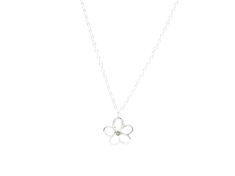 HÄNGE MED KEDJA, sterlingsilver, 1 briljantslipad diamant 0,02 ct J-K/SI, blomma, längd 45 cm, vikt 1,0 g.