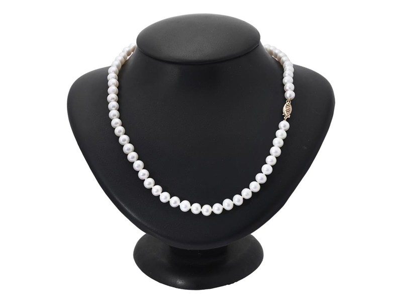 PÄRLCOLLIER, odlade sötvattenspärlor ca 6,5 mm, lås i 9K guld, knutet, längd 51 cm.