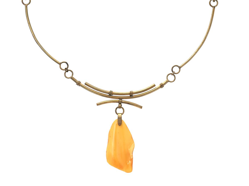COLLIER, brons, bärnsten, halvstel länk, längd ca 53 cm, etui, vikt 25,0 g.