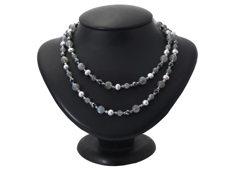 COLLIER, månsten, hematit, odlade sötvattenspärlor, glas, längd 100 cm.