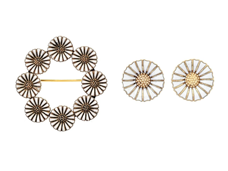 SMYCKESET, silver, vit emalj, broschen stämplad Michelsen, clips, vikt 16,7 g.