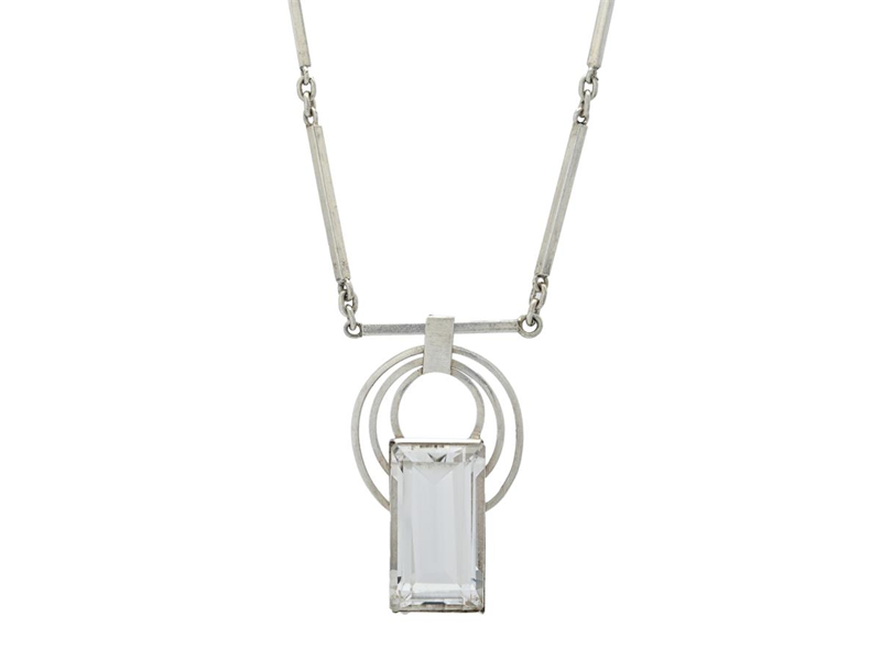 STIGBERT, hänge med kedja, silver, bergskristall, Engelbert, Stockholm 1945, höjd på hänget 33 mm, kedjans längd 64 cm, vikt 16,4 g.