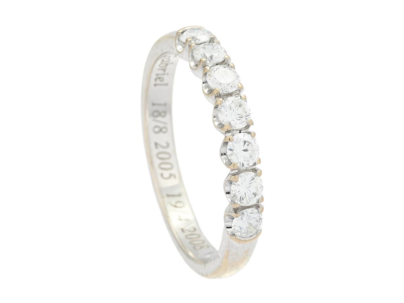 ALLIANSRING, 18K vitguld, briljantslipade diamanter ca 0,45 ctv, ca W/VS, stl 17 mm, vikt 3,0 g, gravyr.