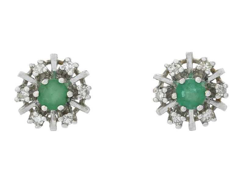 ÖRHÄNGEN, 18K vitguld, smaragder, 12 åttkantslipade diamanter ca 0,18 ctv, stift, mått 10,0 mm, vikt 3,0 g.