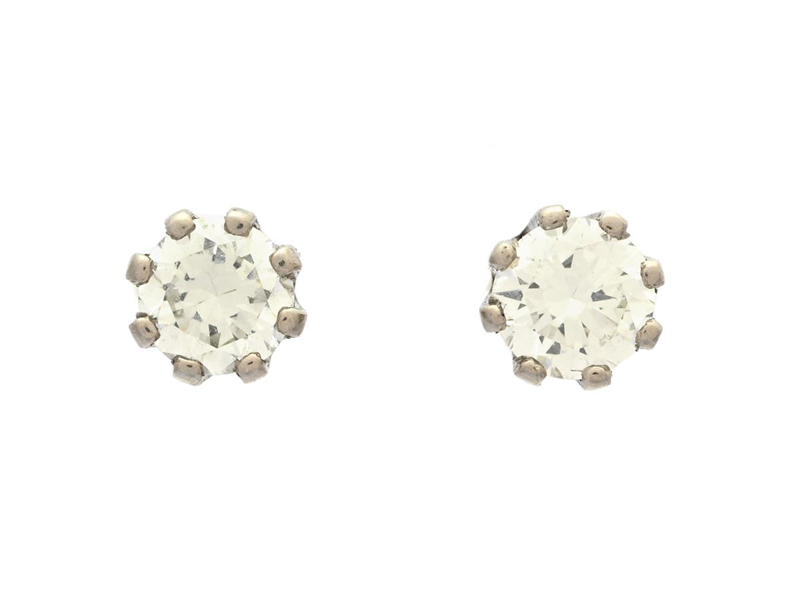 ÖRHÄNGEN, 18K vitguld, 2 briljantslipade diamanter ca 0,30 ctv, ca TW(G)/VS, stift, vikt 0,9 g, en snurrebuss saknas.