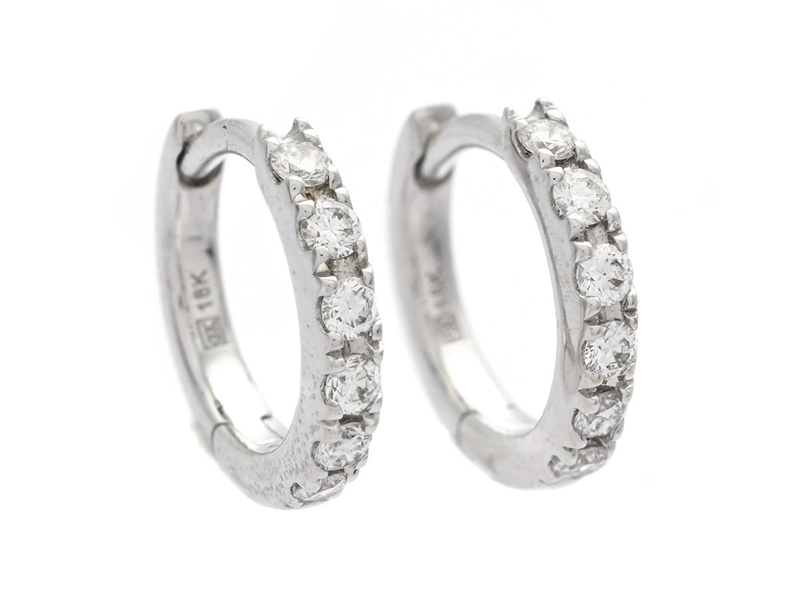 ÖRHÄNGEN, 18K vitguld, 12 briljantslipade diamanter ca 0,14 ctv, ca W/SI, stift, höjd 9 mm, vikt 1,1 g, huggies.