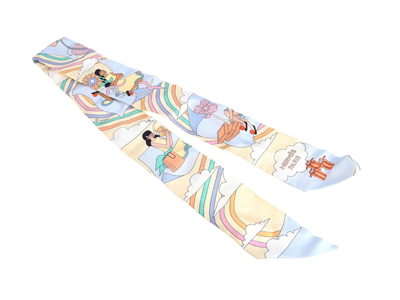 SCARF, HERMÈS, 100% siden, 84 x5 cm, vit, ljusgul, blå, orange.