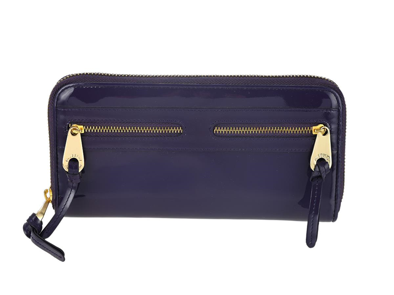 PLÅNBOK, MULBERRY, lila lackskinn, guldfärgade beslag, 19,5x9 cm, kort, mynt, sedel.