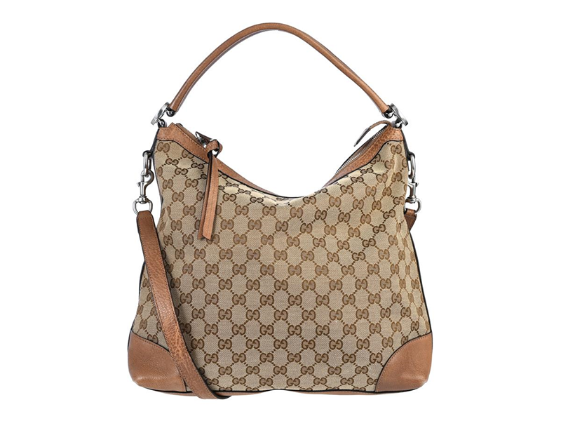 VÄSKA, GUCCI, Hobo Bag, GG tyg beige, brunt läder, silverfärgade beslag, 34x27x10 cm, avtagbar axelrem, bruksslitage, dustbag.