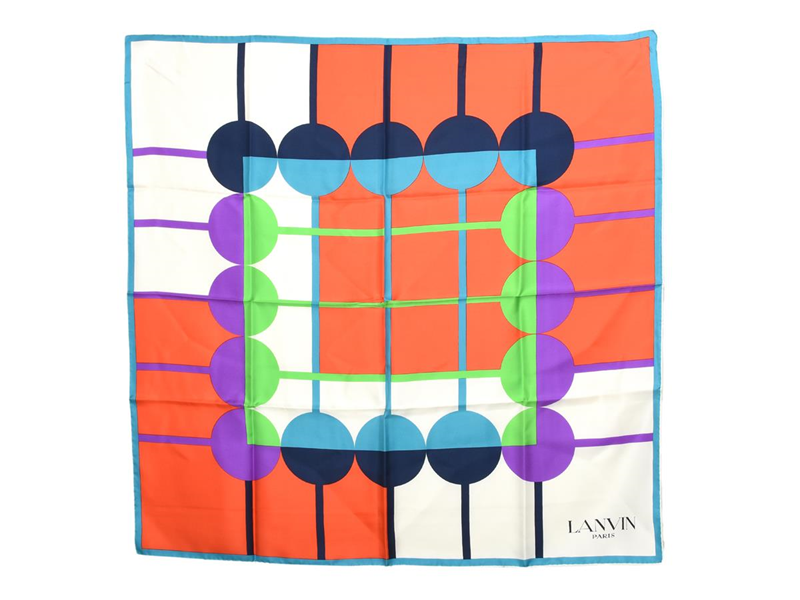 SCARF, LANVIN, 100% siden, 78x78 cm, orange, grön, mörkblå, blå, ljusrosa.