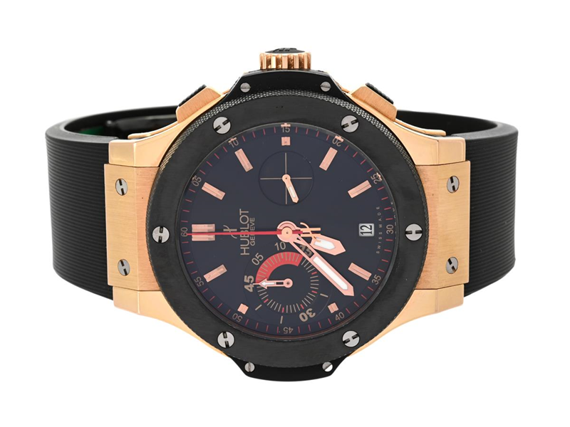 HUBLOT, Geneve, Big Bang, "UEFA 2008 LTD", Cal ETA 7750, Nr. 03/500, Ref nr. 318.PM.1123.RX.EUR08, Boett nr. 715918 / 318, kronograf, herrur, 44 mm, 18K rött guld/keramik, automatisk, safirglas, datum, innerboett i titan, integrerat gummiband, viklås i PVD/rött guld, cert, december 2010, box, ytterkartong. Limiterad och numrerad (Nr. 03/500).