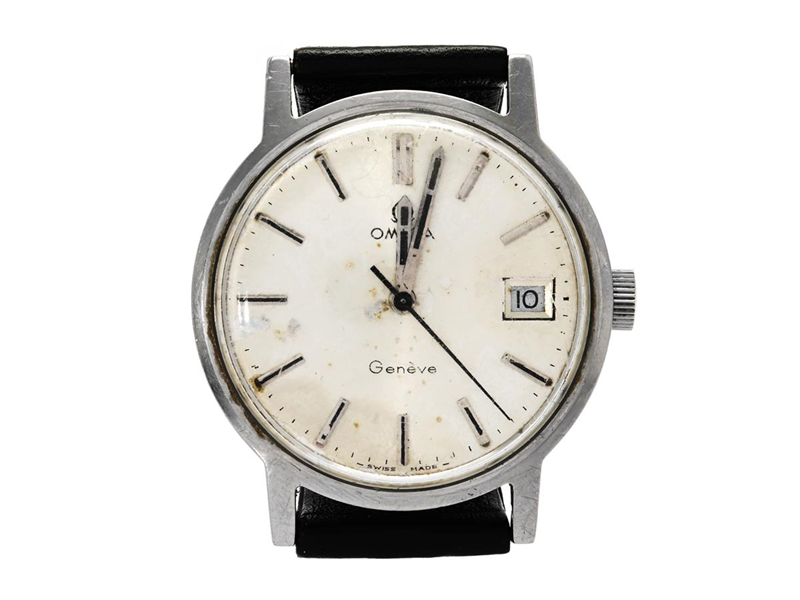 OMEGA, Genève, Cal 613, Serie nr. 34660840, Ref nr. ST 136.0098, Boett nr. 136.0098 (LL), herrur, 35 mm, stål, manuell, plexiglas, datum, skadad urtavla, läderband, ca 1972.